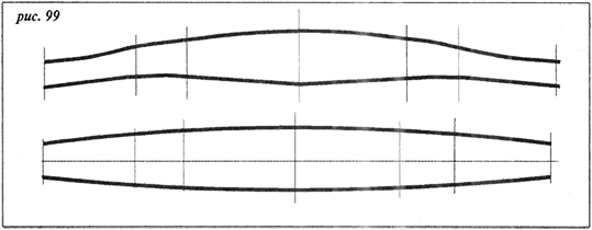 его воплотить. Учитывайте и то, что при эксплуатации боковые части браслета постоянно будут подвергаться механическим воздействиям (главным образом, трению). Элементы, размещенные в этих пространствах, не должны быть высокими. Высота набора от центра к краям контура должна быть как бы угасающей (рис. 100).