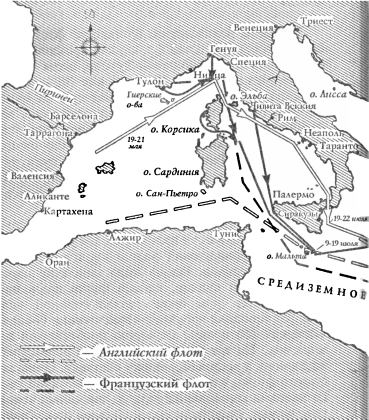 Нельсон пребывал в дурном настроении, хуже того он был напуган. Французский флот выполнил все свои задачи и теперь, по всей видимости, возвращался во Францию. Нельсон испытывал особое беспокойство в отношении выполнения приказа Сент-Винсента (обратить особое внимание «на то, что если экспедиция будет двигаться к Гибралтару, Вам не следует позволять ей пройти пролив до того, как это сделаете Вы, иначе они не дадут Вам вовремя присоединиться к моим силам для того, чтобы совместно воспрепятствовать объединению французского и испанского флотов в заливе Кадис». Теперь французы вполне могли оказаться в западной части Средиземного моря и, в зависимости от наличия у них сведений о местоположении англичан, могли сделать то, о чем Сент-Винсент предупреждал Нельсона, а именно блокировать Гибралтарский пролив. Он понимал, что теперь охотник мог стать жертвой. Поспешный переход британского флота в западную часть Средиземного моря, в связи с тем что Нельсон слишком задержался в его восточной части, оказался лишь повторением уже имевшей место безуспешной погони. Покинув побережье Египта, англичане через двадцать шесть дней подошли к Гибралтарскому проливу. Здесь, к великому облегчению Нельсона, не было обнаружено никаких следов присутствия французского флота. На самом деле адмирал Брюйе понятия не имел о том, какую возможность предоставила ему судьба. Более всего он был заинтересован в безопасном возвращении в Тулон, что он и сделал, причем как раз в тот самый день, когда Нельсон подошел к Гибралтарскому проливу. Так два флота разминулись в последний раз.