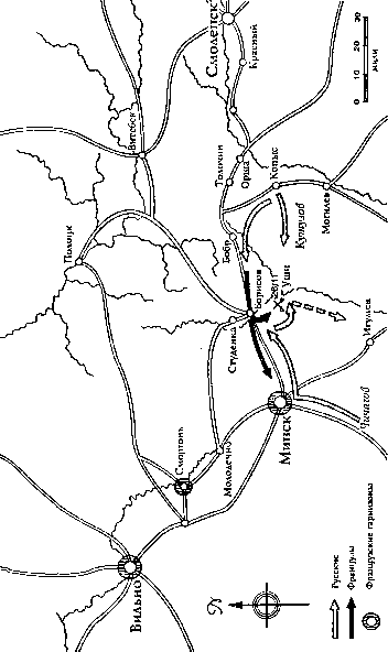 на западный берег Березины, значительно превышало пропускные возможности моста, и Удино дал распоряжение генералу Эблю построить второй мост, пригодный для переправы пехоты. Воданкур оставил свидетельства того, какие именно подразделения форсировали Березину 24 ноября: артиллерия Удино, которую прикрывала кавалерия Корбино и Дюмерка, а также польские уланы из дивизии Домбровского (около 3000 человек); VIII корпус Жюно (1000 чел.); V корпус Зайончека (2500 чел.), усиленный Могилевским гарнизоном; III корпус Нея (2000 чел.) и наконец, около 2000 оставшихся без лошадей истощенных кавалеристов. На следующий день в Борисов прибыл Наполеон с императорской гвардией. Он испытывал неожиданный прилив энергии, которой так не хватало в ходе этой долгой и неудачной кампании. Наполеон направил Маре и Домбровскому целый поток распоряжений и разработал план изоляции и уничтожения армии Чичагова до подхода основных сил русской армии. Узнав о том, что корпус Виктора уже подошел, он распорядился ускорить движение Великой армии, которая в течение еще нескольких дней форсировала Березину под руководством «железного маршала» Даву, после чего двинулась на Минск. Наполеон дал указание предпринять все возможное для того, чтобы ускорить подход 50 000 отставших солдат.
