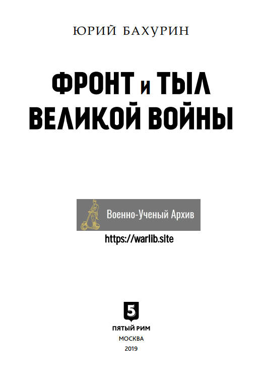 ЮРИЙ БАХУРИН ФРОНТ И ТЫЛ ВЕЛИКОЙ ВОЙНЫ