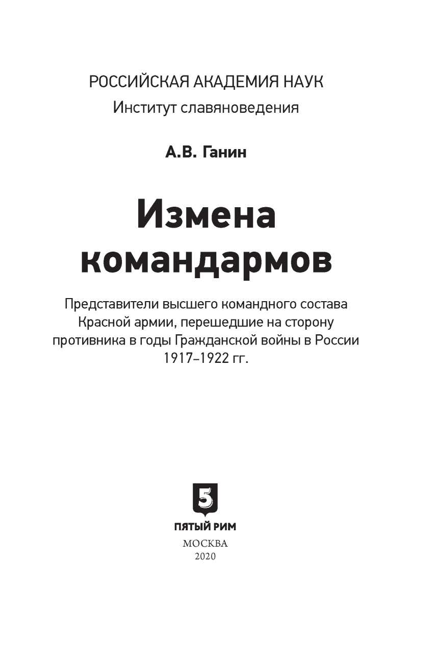 Ганин А.В Измена командармов Представители высшего командного состава Красной армии, перешедшие на сторону противника в годы Гражданской войны в России 19171922 гг.