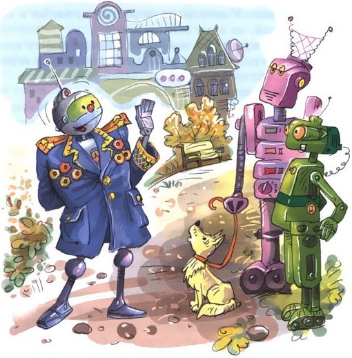 Целый месяц наш робот выходил на улицу только в генеральской форме. При виде его все соседские роботы вставали по стойке смирно, а Гоша важно махал им манипулятором и говорил: