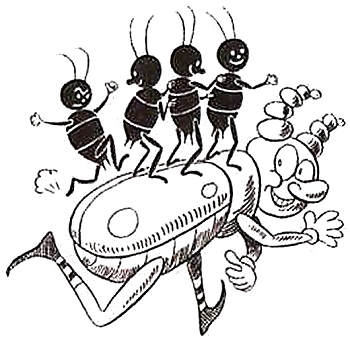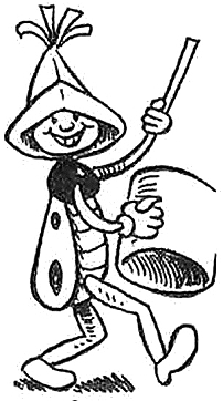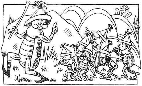 Крупный жук в бумажной шапочке с плюмажем двинулся вперед, размахивая дирижерской палочкой, а за ним зашагал весь жучиный оркестр.