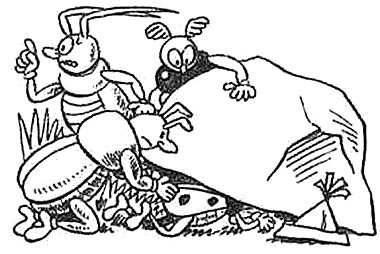 Да уж, знатную заварушку они устроили! Хорошо ещё, что вмешались прохожие: ктото оттащил букашек с соломинками, ктото спрятал Тоничка под камень, а Пытлика отогнали подальше.