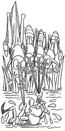 Ну всё, теперь Майскому жуку конец! Сейчас рыба его точно проглотит. Ан нет, надо же, тут вдруг из болота поднялось какоето чудище, страшное как смерть, плеснуло рыбе в глаза грязью и закричало: