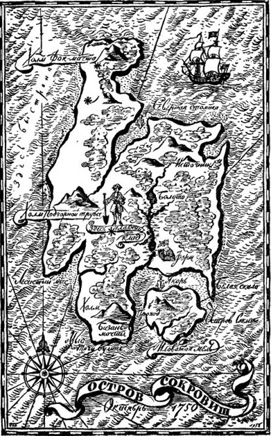 В тот знаменательный год я приехал погостить к своим родителям в Киннерд, над Питлохри. Я бродил по рыжим торфяникам, по берегам золотистого ручья. Первозданный, чистый воздух родимых гор вселял в нас если не вдохновение, то воодушевление, и мы с женой задумали написать вдвоем книгу рассказов о домовых и леших, для которой ею написана была «Тень на постели», а мною «Окаянная Дженет» и первоначальный вариант «Веселых Молодцов». Я люблю воздух родины, но без взаимности; и завершилось это блаженное время простудой, шпанскою мушкой и переселением в бремерский Каслтон через Стретэрди и Гленши. Там дули ветры и соответственно лили дожди. Воздух на моей родине злее неблагодарности людской, и я был принужден значительную часть времени проводить в четырех стенах «дома покойной мисс Макгрегор» так зловеще именовалось мое жилище. А теперь полюбуйтесь, что вытворяет провидение! В дом покойной мисс Макгрегор приехал на каникулы школьник, который жаждал найти себе какое-нибудь занятие, чтоб было над чем поломать голову, О сочинительстве он не помышлял; он отдал мимолетное свое предпочтение искусству Рафаэля и с помощью пера, чернил и коробки акварельных красок, купленной за один шиллинг, он живо обратил одну из комнат в картинную галерею. Моею непосредственной обязанностью было принимать в галерее посетителей; порою, однако, я позволял себе снизойти с моих высот, встать (образно говоря) рядом с художником у мольберта и провести полдня в благородном соперничестве с ним, малюя картинки. Так однажды я начертил карту острова; она была старательно и (на мой взгляд) красиво раскрашена; изгибы ее необычайно увлекли мое воображение; здесь были бухточки, которые меня пленяли, как сонеты. И с бездумностью обреченного я нарек свое творенье «Островом Сокровищ». Я слышал, бывают люди, для которых карты ничего не значат, но не могу себе этого представить! Имена, очертания лесов, направление дорог и рек, доисторические следы человека, и ныне четко различимые в горах и долах, мельницы и развалины, водоемы и переправы, какой-нибудь «Стоячий валун» или «Кольцо друид» посреди вересковой пустоши вот неисчерпаемый кладезь для всякого, у кого есть глаза и хоть на грош воображения. Кто не помнит, как ребенком зарывался лицом в траву, вглядывался в дебри этого крохотного леса и видел, как они наполняются волшебными полчищами!