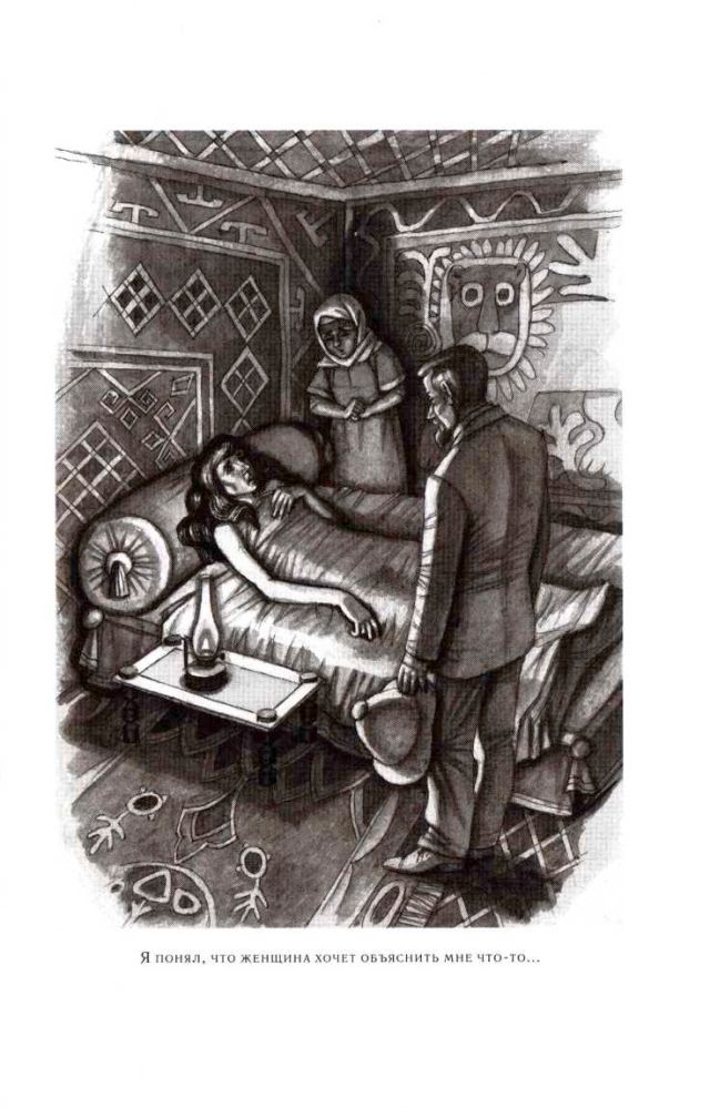 Я приблизился к тахте, нагнулся почти к самому лицу больной, она заметалась на своём ложе и замотала головой. Говорить она, видимо, не могла.