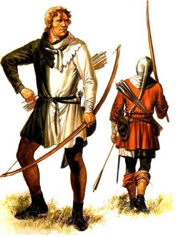 Как я говорил, к войне в Англии готовились. Очень по феодальному, конечно. В 1344 году к военной службе привлекли всех свободных граждан с доходом от 5 до 1 000 фунтов. 5-фунтовое поместье должно было выставить стрелка, 25-фунтовое солдата.