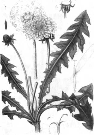 Одуванчик лекарственный. Весьма обычное растение по лугам, на дорогах в садах.