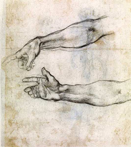 разницу между темпераментами двух крупных представителей Возрождения. У последнего рисунок стоп очень точен, однако они, если так можно выразиться, универсальны, типичны это точно нарисованные ноги человека в определенной позе. У Микеланджело руки характерны, по ним можно судить о личности, ее характере. Они выражают мощь, волевое движение.