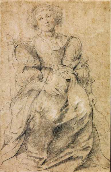 В 1630 Рубенс в возрасте 53 лет женился на 16-летней девушке по имени Елена Фоурмен, младшей дочери Даниэля Фоурмена, торговца шелком из Антверпена. Она пользовалась славой первой красавицы во Фландрии. Этот подготовительный рисунок мастер сделал для живописного портрета, который сейчас находится в экспозиции Старой пинакотеки в Мюнхене («Портрет Елены Фоурмен в свадебном платье», 16301631).