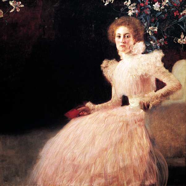 «Портрет Сони Книпс» образец раннего творчества живописца. Несколько слов необходимо сказать о модели. Соня Книпс, урожденная баронесса Пуатье, была женщиной с тонкой душевной организацией, состояла в браке с обеспеченным мужчиной. Делом ее жизни стала поддержка прославленных «Венских мастерских». Согласившись позировать Климту, она совершила смелый поступок поддержала скандального художника: дело в том, что ранее Климт создал фрески для оформления Венского университета, которые заказчик признал порнографическими. В этой картине автор рифмует нежный отлив белых цветов и платья героини. Перед зрителем классический портрет, отвечающий идеалам модерна. Художник любуется чертами лица Сони, ее сосредоточенным, «месмерическим» взглядом. Обращает на себя внимание поза девушки: она как будто только присела и на секунду замерла. Особую утонченность портрету придает «налет старины»: платье похоже на средневековые наряды английских королев, цветы как будто вышли с голландских натюрмортов, а черный фон пользовался большой популярностью в европейских портретах знатных особ XVXVIII веков. На нем еще ярче проступают бледные с отсветом черты лица и одежда Сони. Вокруг женщины возникает особая таинственная аура, как будто художник запечатлел ее душевное состояние, полное спокойного достоинства. Портрет, безусловно, должен был польстить заказчице.