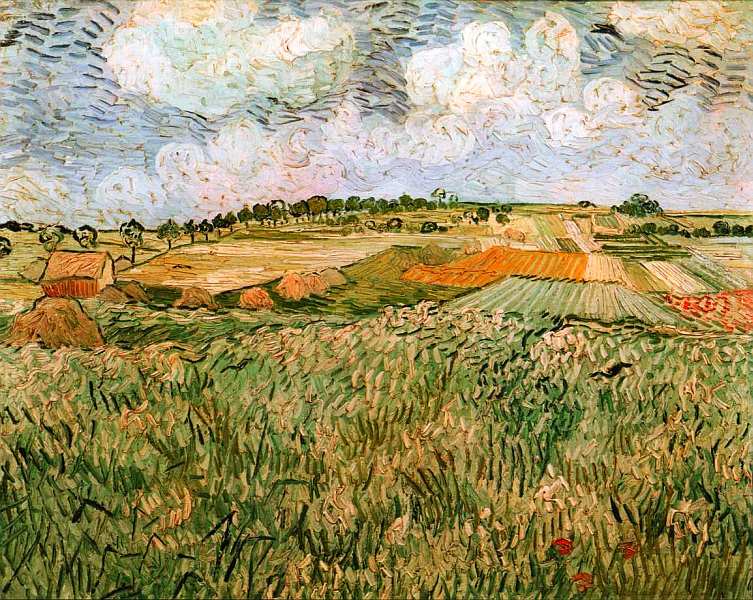 Последнее лето в 1890 Ван Гог провел в местечке Овер-сюр-Уаз недалеко от Парижа. Там он написал около 80 полотен, создавая иногда по два в день. Необходимо отметить еще одну особенность творческой манеры живописца: его работы одновременно отвлеченны, придуманы, даже сказочны, но при этом атмосфера, передающаяся через эту «сделанность», соответствует хорошо знакомым любому человеку ощущениям природы. Глядя на эту картину, зритель чувствует порывы ветра, ароматы поля, тепло солнечного дня, кажется, ощущается даже запах нагретых трав. Облака на полотне как будто нарисованы ребенком. В этом сочетании узнаваемых ощущений и художественной условности, почти детской наивности состоит своеобразие таланта Ван Гога. Данному и другим произведениям цикла особое звучание придает то, что однажды августовским вечером мастер, испытывавший серьезное нервное напряжение, вышел в поле и выстрелил себе в грудь. Спустя сутки он скончался.
