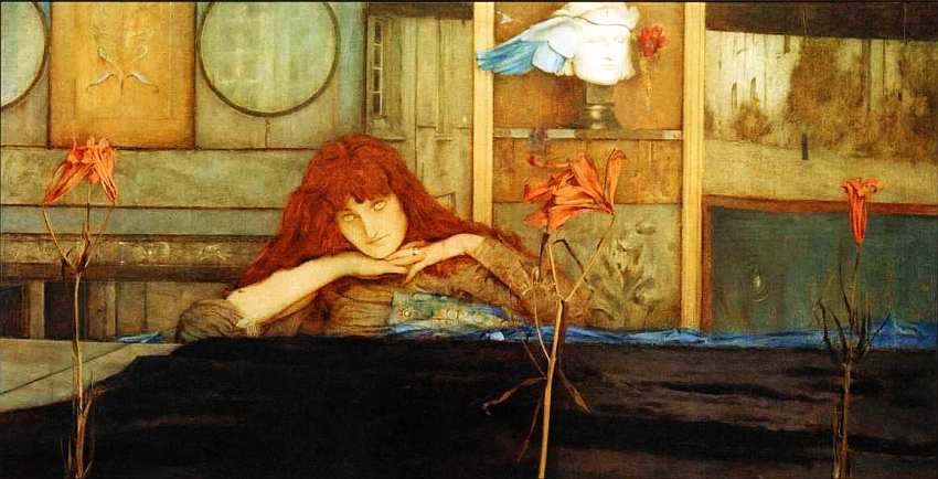 В творчестве Кнопфа, что свойственно и символизму в целом, важную роль играет интерес к сферам сна, подсознания, гипноза, мистики. Зрачки героини нарисованы так, что видно, что в действительности она спит наяву, изображен слепой, одурманенный, «месмерический» взгляд. Важную роль в общем строе картины играет скульптурная голова бога сна Гипноса, оригинал которой хранится в Британском музее в Лондоне. Интересно, что Кнопф сам вылепил ее копию и запечатлел реплику в нескольких работах. Бог сна был для него важным символом, ведь художник увлекался гипнотическими сеансами. Цветы