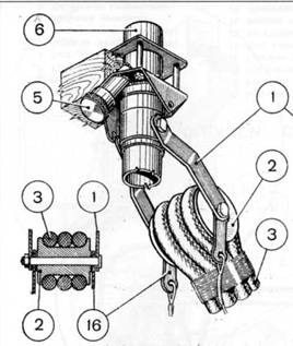 УЗЕЛ КРЕПЛЕНИЯ КАТУШКИ АМОРТИЗАТОРА К КОСТЫЛЮ