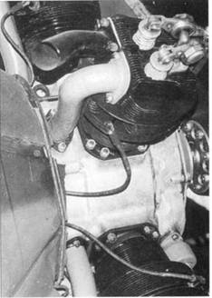 Детали конструкции силовой установки польского лицензионного варианта По-2 послевоенной постройки. Нижняя панель капота без выштамповки. Выхлопные патрубки нижних цилиндров имеют симметричное расположение.