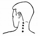 Рис. 50.Точки для надавливания на задней поверхности шеи для воздействия на продолговатый мозг