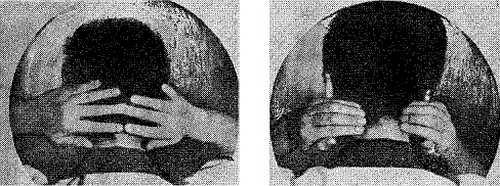 повторите надавливание три раза. Тремя пальцами надавливайте с обеих сторон на заднюю поверхность шеи по направлению книзу (см. рис. 43, 50). Повторите три раза для каждой из трех точек.