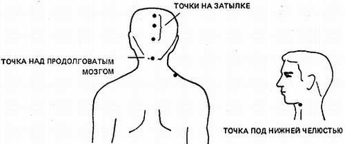 Рис. 48.Точки для надавливания на задней поверхности шеи