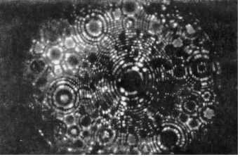 Рис. 1. Фотография изображения вольфрамового острия диаметром около 150 е Среднее увеличение в 2,5 миллиона раз вающая расположение атомов в металле.