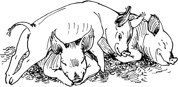 Гораздо легче оказалось производить уборку у отъемышей поросят в возрасте от тридцати до шестидесяти дней. Это уже вполне самостоятельные подростки, по пылу и брызжущей из них энергии похожие на человеческих детей семи-восьми лет. От них было больше всего шума, потому что, если в боксах свиноматок какой-нибудь поросенок и поднимал визг, это могло означать только одно: мамаша неудачно повернулась и придавила его, и теперь малыш изо всех силенок старается выползти из-под ее туши. Отъемыши уж если вопили, то все разом просто из солидарности или потому, что делать больше нечего. То и дело в разных боксах раздавался визг, его тут же подхватывали в соседних клетках. Наверняка среди поросят было два-три невыявленных провокатора, которые по очереди устраивали шум, а потом втихомолку наслаждались полученным эффектом. В самом деле, наблюдая за другими животными, я заметила, что большинство детенышей склонны находить себе развлечения. С удовольствием играют иногда даже взрослые звери. Про свиней вряд ли можно сказать, что они тупые, ограниченные твари умнее их только дельфины, собаки, обезьяны и, как ни странно, гуси.