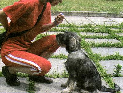 Итак, собака очень интересуется вашей рукой нюхает, лижет, кусает, грызет, гавкает, трогает лапой, пытается открыть ладонь и взять лакомство. Не реагируйте, ждите малейших признаков отступления, и как только собака отказывается от тех действий, которые она предпринимала, чтобы завладеть лакомством, клик лакомство падает в миску (1 кусочек из 5). Собака съедает его и с новой надеждой кидается на вашу руку с лакомством. Снова ждем отказа и кликаем. Если вы кликаете вовремя, собака очень быстро понимает, что ей надо делать, чтобы получить лакомство. Она сперва начинает очень быстро отказываться, а потом внимание! будет делать вид, что этой руки с лакомством вообще не существует!!! Так вот и это тоже отказ! За это тоже надо кликать и давать премию!!!