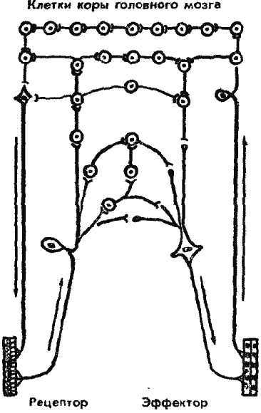Кора головного мозга орган психической деятельности, в ней происходит формирование окончательных ощущений на действия различных раздражителей; сформировавшиеся ощущения в коре головного мозга пусковой механизм для сложных поведенческих реакций, они проявляются в виде определенных эмоций, которые имеют важное значение в замыкательной функции при образовании сложных условных рефлексов (рис. 4).