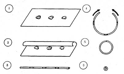 Та же операция может быть выполнена и в системах высших измерений. Предположим, что существует двухмерная система, представляющая собой плоскость, на которой размещаются три, не связанные друг с другом фигуры (рис. 7). Свернем эту плоскость в третьем измерении и получим трубку бесконечно малого диаметра, так как двухмерная система не имеет толщины. Поэтому если число витков трубки будет стремится к бесконечности, то ее диаметр к нулю. Плоскость превращается в линию. o