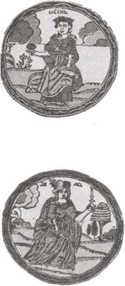 «Осень» и «Зима». Аллегорические изображения времен года из зодиакального календаря.