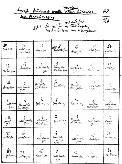 Один из них модуляция, то есть расширение модуля от двойного, скажем, к четверному, а затем сокращение до двойного. Так внутри схемы шахматной доски, в этом пространственном делении, возникает большая форма, показывающая, как модуль расширяется и сжимается. Тем самым не просто определяется расчерченное, поделенное на отчетливые элементы пространство: это пространство еще и модулируется согласно некоторой направленности, отмеряющей одновременно его величину и характер его развития.