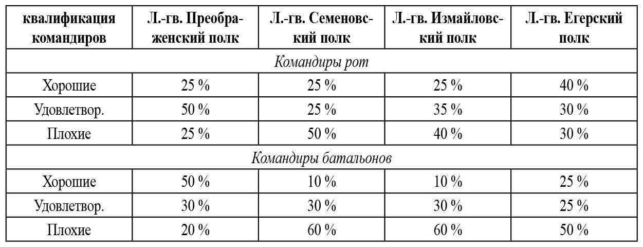 Квалификация командиров рот и батальонов полков 1-й гвардейской пехотной дивизии в 19141917 гг. по оценке генерал-майора Д.В. Альтфатера (1929 г.)60