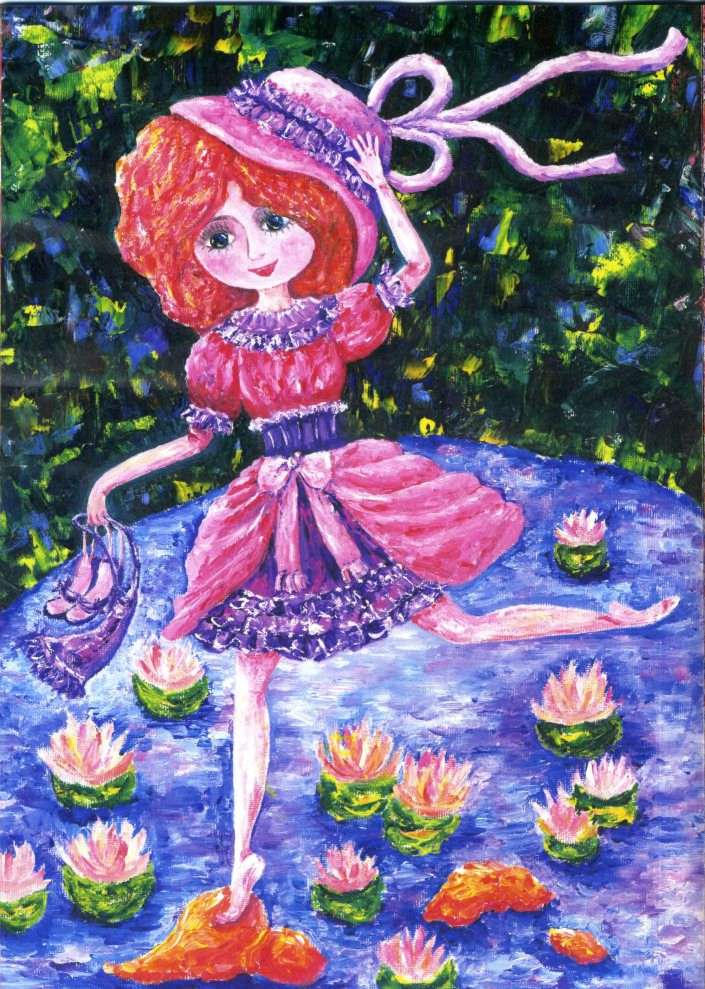 «Держись, Юлечка!» кричит себе девочка. Кажется, даже язычок высунула от волнения. Можно подумать, что над водой порхает золотой одуванчик. Это волосы у Юлечки яркие, как огонь. Вьются легкими струйками по плечам, по спине, летят по ветру.