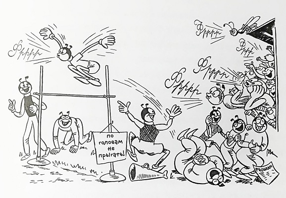 Ещё восемь червяков лопнули от напряжения, но их уже никто не слышал, никому уже не было до этого дела такое волнение царило на стадионе. А сейчас тем более никому не хотелось отвлекаться: начиналось самое удивительное зрелище прыжки с шестом.