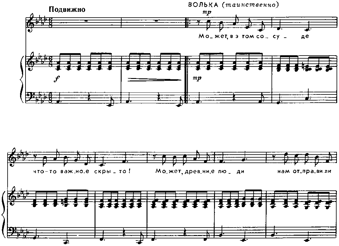 ВОЛЬКА. Эх, ты! Сонная тетеря! Как ты можешь говорить про какое-то кино, когда я нашел такое... такое. (Протягивает ей сосуд.) Представляешь, нырнул... и вдруг вижу... (Приподнимает сосуд над головой.)