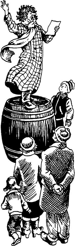Откуда-то прикатили бочку, хорошо зная, что Филофей умеет читать стихи, только стоя на бочке. Установилась тишина. Филофей прокашлялся, достал из кармана поэму и прочел ее «с выраженьем», заслужив бурные аплодисменты.
