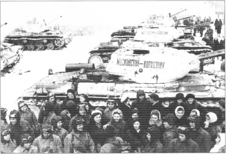 | Делегация колхозников передает воинам танки, построенные на собственные сбережения |