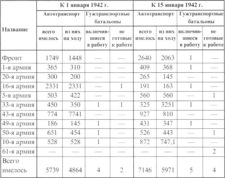 Следует отметить, что государственные и военные органы управления СССР не только отслеживали ситуацию с организацией подвоза, но и при необходимости принимали действенные меры, чтобы оказать практическую помощь. Так, 14 декабря 1941 года по личному указанию И.В. Сталина для улучшения организации подвоза из автомобильного резерва Верховного Главнокомандования 10-й армии был дополнительно придан 805-й автомобильный батальон, а 30-й армии 775-й автомобильный батальон'.