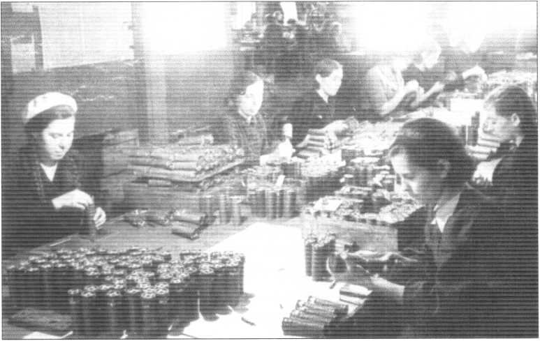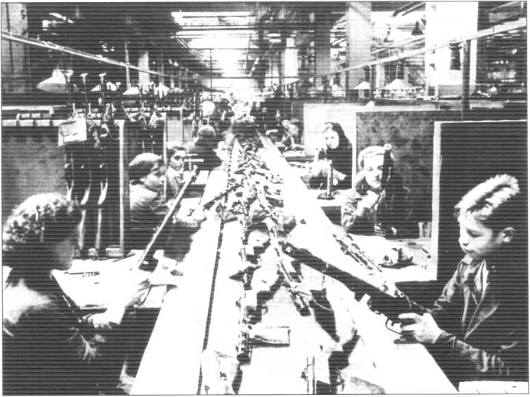 | Конвейер сборки автоматов ППШ на автозаводе им. Сталина. 1941 г. |