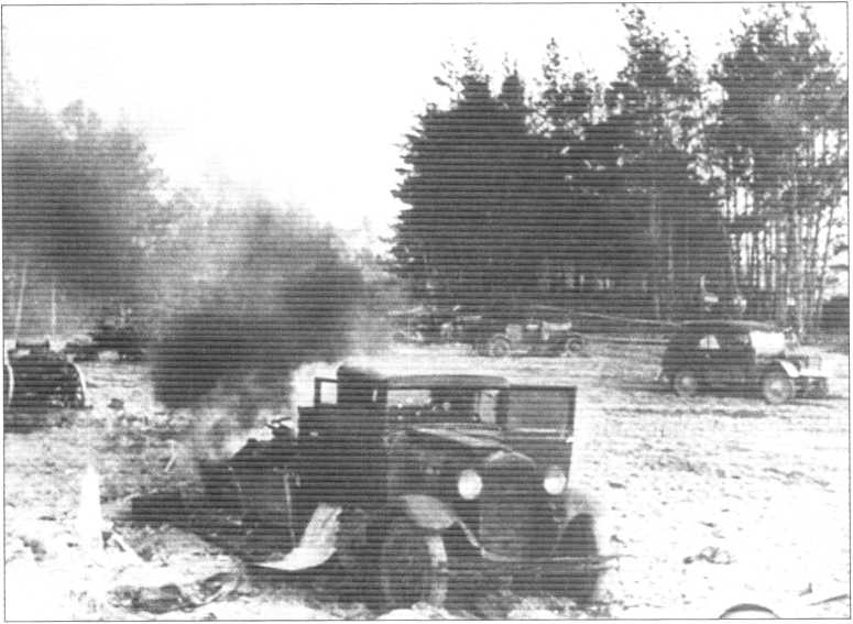 | Разбитая тыловая колонна под Брянском. Октябрь 1941 г. |
