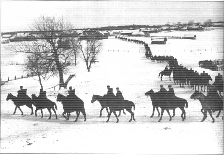| Части 1-го гв. кавалерийского корпуса передвигаются в тылу врага |