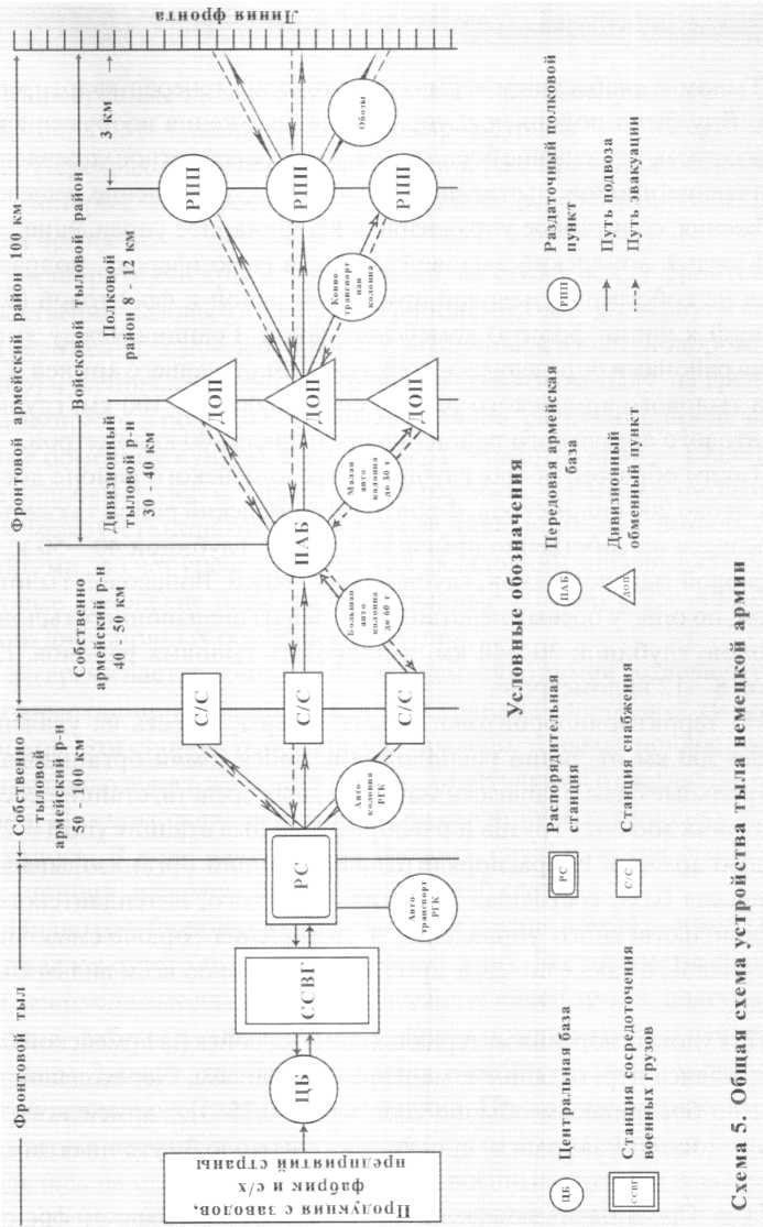 В обеспечении Действующей армии все больше стали применяться эрзац-продукты. Потери боевых соединений и частей в технике привели к тому, что значительная часть автотранспорта тыловых подразделений была изъята и передана в войска, а вместо них стал усиленно эксплуатироваться конский состав. Значительные потери в командном составе, в том числе и тыловых органов, привели к тому, что на тыловые должности стали назначаться офицеры, не имевшие должного опыта работы. Все это привело к тому, что организация тыла вермахта на советско-германском фронте стала резко отличаться от первоначальной схемы, а организация тылового обеспечения войск не всегда