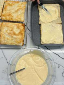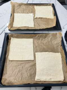 6. На два противня выложить 4 квадрата теста, выпекать в нагретой духовке 200 гр., 20-25 минут.