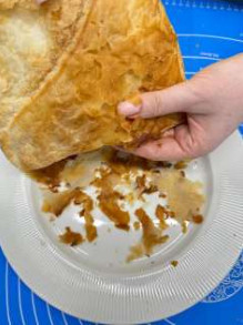 1. Во-первых, вынуть из морозилки тесто фило за 5 часов до приготовления (для того, чтобы тесто хорошо разморозилось, и листы теста не были липкими, и масло будет лучше впитываться в них)
