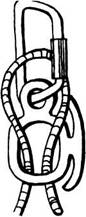 При необходимости навесить компенсационную петлю на дерево поступают так: кусок веревки дважды обматывается вокруг дерева и затем концы веревки завязываются встречнойвосьмеркой или грейпвайном (рис. 33). Карабин встегивается в оба витка.