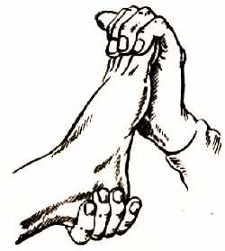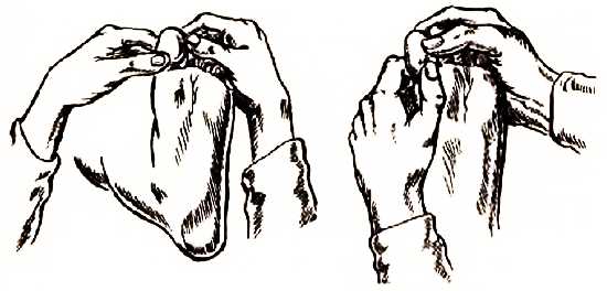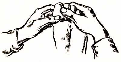 Массирование основания больших пальцев влияет не только на зоны шеи и глотки, но и на верхние отделы позвоночника, миндалины и щитовидную железу, а поэтому массировать следует с большой осторожностью. При этом одна рука держит палец, а второй рукой проводятся массирующие движения слева на право, и наоборот.