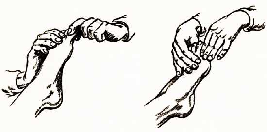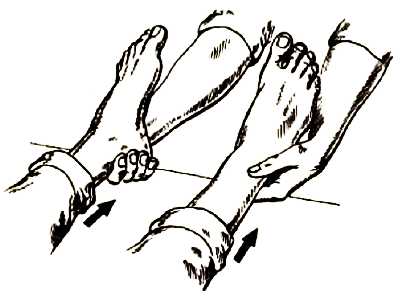 3. При подготовке и по окончании массажа (В соединении с элементом «Наложение рук на тыльную сторону ступни»)