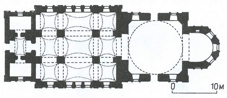 20. ЦЕРКОВЬ НИКОЛЬСКАЯ, кирпичная, строилась в 1890-х гг. на средства благотворителей и прихожан. Яркий образец эклектики, памятник примечателен несоответствием наружного храмового объема его внутренней форме. Одноапсидный храм типа восьмерик на четверике, характером масс и тяжелых пропорций близкий архитектуре барокко, имеет ампирный интерьер с купольной ротондой, формирующей несложное целостное пространство. В разработке фасадов использованы мотивы различных стилевых направлений допетровского и новейшего зодчества. Не получивший пластического развития плоский кирпичный декор схематичен по рисунку, сух и графичен по выполнению. Глухую верхнюю зону стен массивного куба храма заполняет узор, стилизующий форму закомар; оригинальные крупные волюты, заимствованные из архитектуры московского барокко, чередуясь с поясом арочных ниш, венчают грани второго яруса. В совокупности с граненым контуром дверных перемычек и утраченными крыльцами на кувшинообразных столбах эта декорация внесла в облик памятника черты псевдорусского стиля. Четырехстолпная трапезная с приделами, перекрытая системой парусных сводов, соединяет храм с квадратной башней колокольни, три яруса которой поднимаются над широким прямоугольным основанием. Силуэт и сдержанные формы убранства роднят колокольню с аналогичными постройками провинциального классицизма.