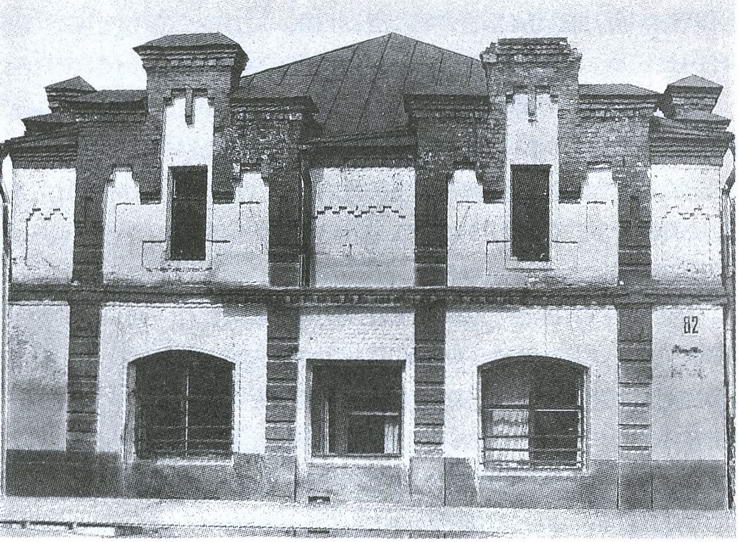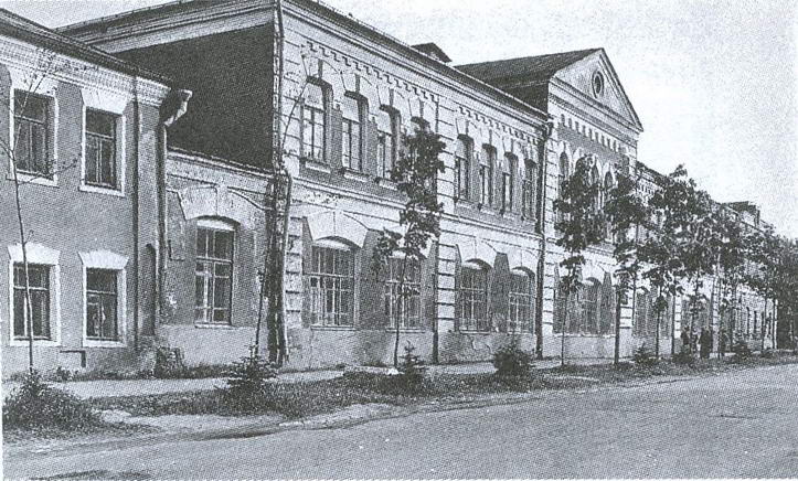 7. УЧИЛИЩЕ ЖЕНСКОЕ (ул.Парижской Коммуны, 4) построено в 1900-х гг. на средства М.Н.Бардыгина. Двухэтажный кирпичный корпус с чертами эклектики и модерна в архитектуре характерен для застройки центральной части города, в частности наличием внизу торговых помещений. Назначение здания определило осевую, строго симметричную композицию фасада и плана; ее средоточием служат обращенный во двор вестибюль учебного заведения, а над ним высокий рекреационный зал с большими окнами в торцах. Планировка училища, расположенного на верхнем этаже, коридорного типа. В соответствии с шагом внутренних стен главный фасад расчленен рустованными лопатками, его повышенная средняя часть выделена арочными окнами и фронтоном. Внизу двери в лавки, превращенные позднее в окна, своцм мерным ритмом и лучковыми перемычками напоминают привычные аркады торговых рядов XVIII XIX вв. Парадная представительность здания смягчается декоративным приемом сопоставления красного фона стен и беленых деталей лопаток, перемычек проемов, карнизов с кирпичными подзорами. Использованные в первом этаже своды Монье во втором сменяются балочными перекрытиями. В отдельных помещениях сохранились бетонные полы с орнаментом из мраморной крошки.