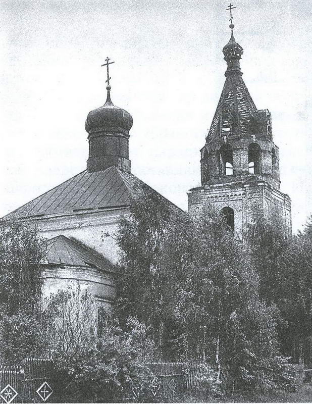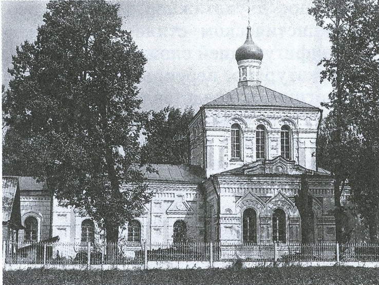 14. ЦЕРКОВЬ НИКОЛЬСКАЯ, кирпичная, строилась на месте деревянной на рубеже XIX XX вв., отделка завершена в 1916 г. Эклектичная архитектура здания основана на сочетании разностильных приемов и переработке декоративных мотивов допетровского зодчества. Главенствующий в трехчастной объемной композиции бесстолпный ярусный храм завершен массивной купольной ротондой, снаружи имеющей форму восьмигранника; покрыт каркасной кровлей наподобие главы. Широкими арками храм объединен с небольшой трапезной и пониженными боковыми приделами, имеющими собственные входы с западной стороны. Созданное таким образом крестчатое, хорошо организованное пространство насыщено воздухом и светом. Подобно ротонде округлый внутренний абрис алтарей не отвечает их внешней граненой форме. Композицию завершает колокольня в два яруса типа восьмерик на четверике с деревянным верхом каркасной конструкции и луковичной главой на глухом граненом барабане. Сдержанная обработка фасадов здания плоскими фигурными нишами, наличниками с перехватами и килевидным очельем имеет крупный масштаб. Чрезвычайно выразительны большие трехарочные окна храма с висячими гирьками, украшающие его боковые фасады.