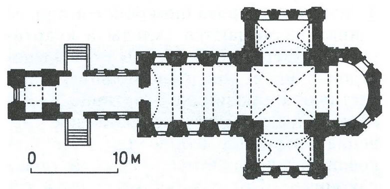 13. ЦЕРКОВЬ НИКОЛЬСКАЯ выстроена из кирпича в 1859 г. на средства Д.И.Хлудова, колокольня сооружена в 1886 г., трапезная перестроена и расширена в 1889 1891 гг. Эклектичная архитектура здания отражает различные этапы развития псевдорусского стиля. Бесстолпный одноглавый двусветный четверик храма под четырехскатной кровлей перекрыт ложным сомкнутым сводом, поддерживающим каркасный, обшитый железом граненый барабан. Деревянные конструкции верха в 1997 г. заменены металлическими. Схема фасадов восходит к образцам московского зодчества XV XVI вв. На плоскостях стен воспроизведена ступенчатая трехчастная композиция с высоким центральным и пониженными боковыми пряслами, увенчанными килевидными архивольтами фальшивых закомар. Этот средневековый мотив сочетается с элементами классицизма в обработке оконных проемов и венчающего карниза. Алтарь с плоским потолком и четырехстолпная двухпридельная трапезная, перекрытая системой пологих парусных сводов, намечают продольную ось постройки, завершенной шатровой колокольней в четыре яруса. Последняя, наиболее выразительная часть здания общей структурой близка прототипам XVII в., но пластическая разработка ее более суха, декоративные формы трактованы в духе нового времени и местами измельчены. Каркасный шатер имеет один ряд слухов.